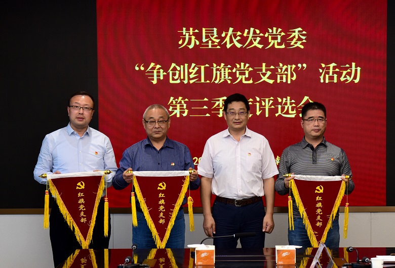 最后,倪志愿在總結講話中對當前黨建工作作了部署。會上,各子公司、農科院黨組織書記進行了三季度述職,隨后,經現場票決,最終公司總部第三黨支部、農科院黨支部、蘇墾農服黨支部經過兩輪激烈角逐一舉奪旗,獲得第三季度“紅旗黨支部”流動紅旗。