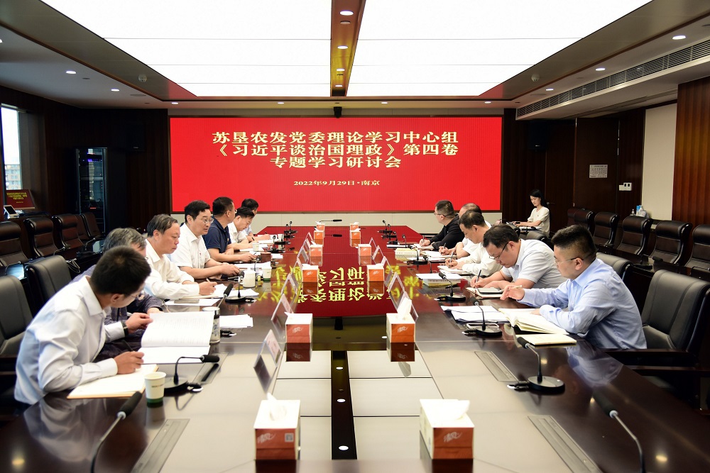 • 9月29日,蘇墾農發黨委理論學習中心組召開《習近平談治國理政》第四卷專題學習研討會,蘇墾農發黨委書記王立新主持會議并講話。