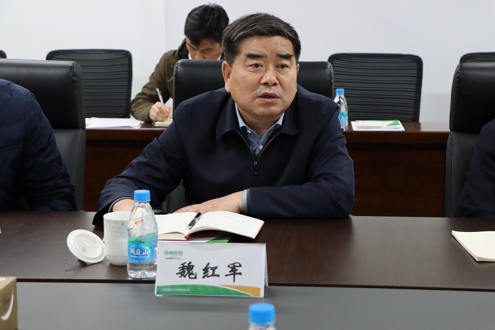 魏紅軍在調(diào)研座談時(shí),充分肯定了蘇州蘇墾成立以來取得的成效。他表示在經(jīng)濟(jì)最發(fā)達(dá)地區(qū)推行蘇墾模式,展示農(nóng)業(yè)現(xiàn)代化水平,樹立一面旗幟,非常不容易。他強(qiáng)調(diào)要不斷探索實(shí)踐,不斷總結(jié)提高,豐富“蘇墾模式”的內(nèi)涵;要加強(qiáng)宣傳,積極與地方政府溝通,講好蘇州蘇墾故事,爭(zhēng)取更多支持,贏得持續(xù)健康發(fā)展。