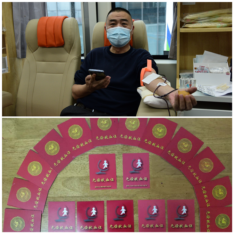獻血車的空間不大,但大愛與奉獻在這里傳遞,暖流在這里流淌。正在獻血的汪海峰,是大華種業集團的一名普通員工,他被許多人稱呼為“獻血達人”。多年來,他堅持參與愛心獻血活動,積累起來的無償獻血證已經超過20本,獻血總量達9600cc。他是首批“江蘇省無償獻血榮譽證”獲得者?!皩W雷鋒要見行動,力所能及、互幫互助嘛。”他說,“我能夠通過自己的一點微薄之力就能幫助到需要的人,對我而言是一件很有意義的事?!泵鎸ΜF場宣傳人員的鏡頭,他一直婉拒,幾經堅持才勉強配合拍下一張照片。