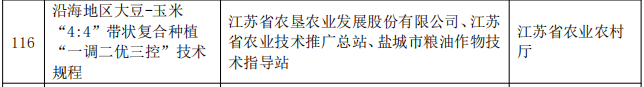 2022年蘇墾農發承擔了10萬畝玉米大豆帶狀復合種植任務,占江蘇省的1/6,開創性提出了“寬窄行4:4”玉米大豆帶狀復合種植模式,配套研發6種不同結構的專用農機,實現了玉米大豆“定向化除”,形成了一套措施合理、適用區域廣、示范性強的技術模式,《沿海地區大豆-玉米“4:4”帶狀復合種植“一調二優三控”技術規程》作為全省第一個以玉米大豆帶狀復合種植立項的省級地方標準,具有較強的生產推廣價值和實踐應用基礎。