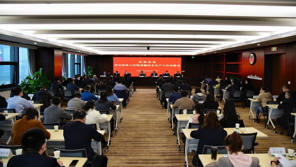 12月12日上午,蘇墾農發召開雙百改革工作推進暨安全生產工作布置會,貫徹落實集團2024年改革發展研討會與安全生產電視電話工作會議精神,部署、推進“雙百行動”綜合改革與安全生產有關工作,集團總經濟師、蘇墾農發黨委書記、董事長朱亞東主持會議并講話,集團黨委委員、蘇墾農發副總裁(牽頭經營層工作)丁濤出席會議并講話。
