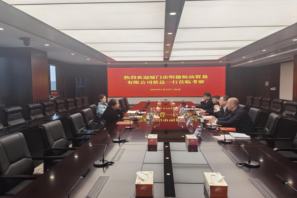 1月19日,廈門市明穗糧油貿易有限公司副總經理、財務總監蔡川珊一行到蘇墾農發考察交流。集團黨委委員、蘇墾農發副總裁(牽頭經營層工作)丁濤出席座談會。