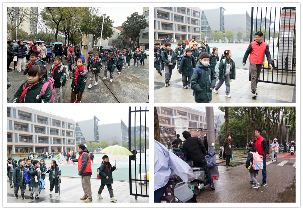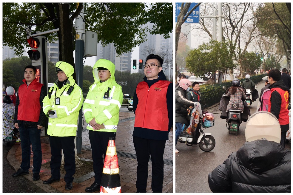 用心“護(hù)學(xué)”,為愛“站崗”。每到上學(xué)、放學(xué)高峰期,南師大附屬中學(xué)新城小學(xué)、金陵中學(xué)河西分校小學(xué)部的校門口都很擁堵,車流量大,來往人員眾多。活動(dòng)當(dāng)日,志愿者們不畏嚴(yán)寒早早來到校園門口,開展“護(hù)學(xué)崗”志愿服務(wù),疏導(dǎo)學(xué)校周邊的車輛和人員,提醒接送孩子的家長不要扎堆,引導(dǎo)放學(xué)的孩子到安全區(qū)域行走,時(shí)刻提醒騎電動(dòng)車、摩托車的家長注意雨天行車安全,確保學(xué)校周邊交通安全有序,為師生、家長的安全出行筑起一道“綠色”通道。