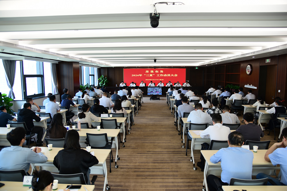 5月17日上午,蘇墾農發召開2024年“三夏”工作動員大會。集團公司總經濟師、蘇墾農發黨委書記、董事長朱亞東主持會議并講話,農墾集團黨委委員、蘇墾農發總裁丁濤作動員報告。蘇墾農發黨委委員、副總裁周義東,蘇墾農發副總裁徐啟來分別就一體化全農服務、“三夏”期間農業生產工作作了具體布置。