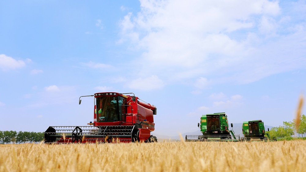 •        麥浪翻滾,沃野生金。據(jù)農(nóng)情調(diào)度顯示,截止6月10日,東辛本部、外拓、托管20.7萬畝小麥全部收割結(jié)束,夏糧單產(chǎn)、總產(chǎn)有望再創(chuàng)新高。在整個小麥收割期間,科技和機械化進步讓收割質(zhì)效大幅提升,大力實施建設(shè)的高標準農(nóng)田、烘干倉儲項目等使農(nóng)業(yè)機械化有了大展拳腳的機會,國有及自主外聯(lián)的具有國際領(lǐng)先水平的約翰迪爾s660、凱斯4088等大型收割機分發(fā)揮主力軍作用,科技助力東辛開啟現(xiàn)代化農(nóng)業(yè)生產(chǎn)“加速度”,新質(zhì)生產(chǎn)力在東辛廣袤的大地上噴涌而出。