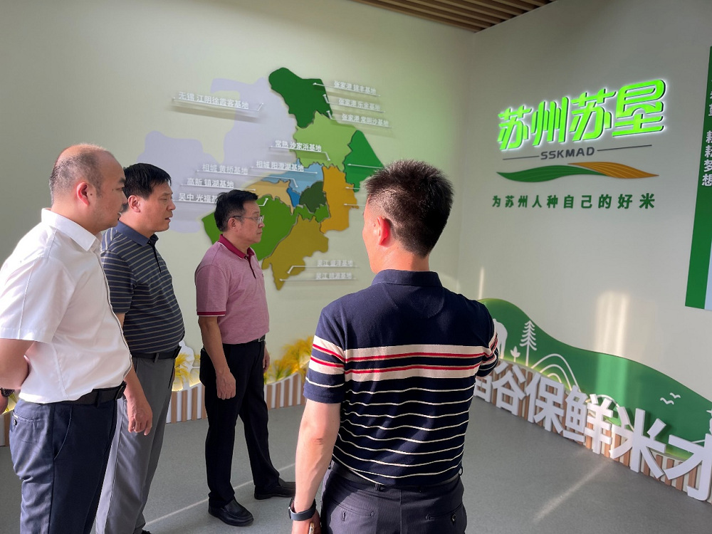 •        7月16日,省糧食和物資儲備局黨組成員、副局長李德,省糧油學會理事長夏春勝等領導到蘇州蘇墾展示店調研指導工作。