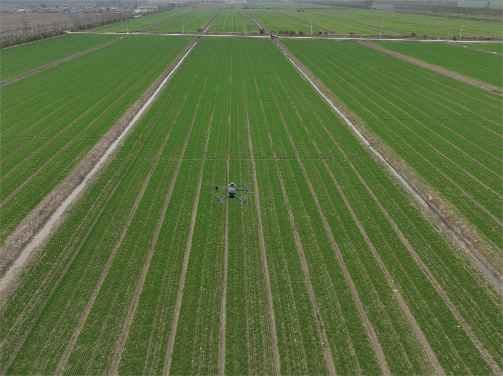 (2024年11月9日,蘇墾農發東辛分公司無人機查看苗情)