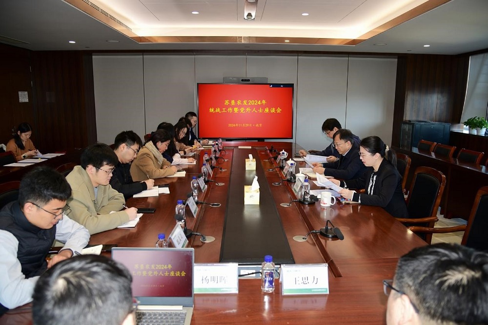 11月29日上午,蘇墾農發召開2024年統戰工作暨黨外人士座談會,民建會員、農工民主黨員、無黨派人士等10名駐寧統戰成員代表共聚一堂、共話發展。