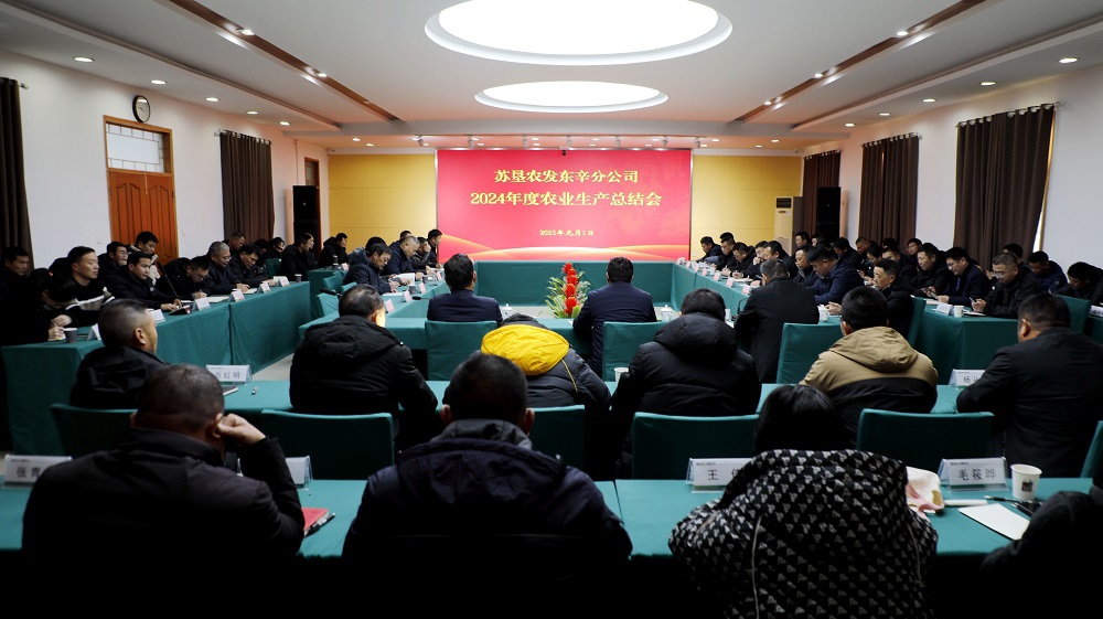 •        為進一步總結經驗、查擺問題,促進農業生產提質增效,2025年1月1日,蘇墾農發東辛分公司在招待所南會議室召開2024年度農業生產總結會。蘇墾農發東辛分公司常務副總經理陳躍武主持并講話,副總經理武心波、王加樹參加會議。