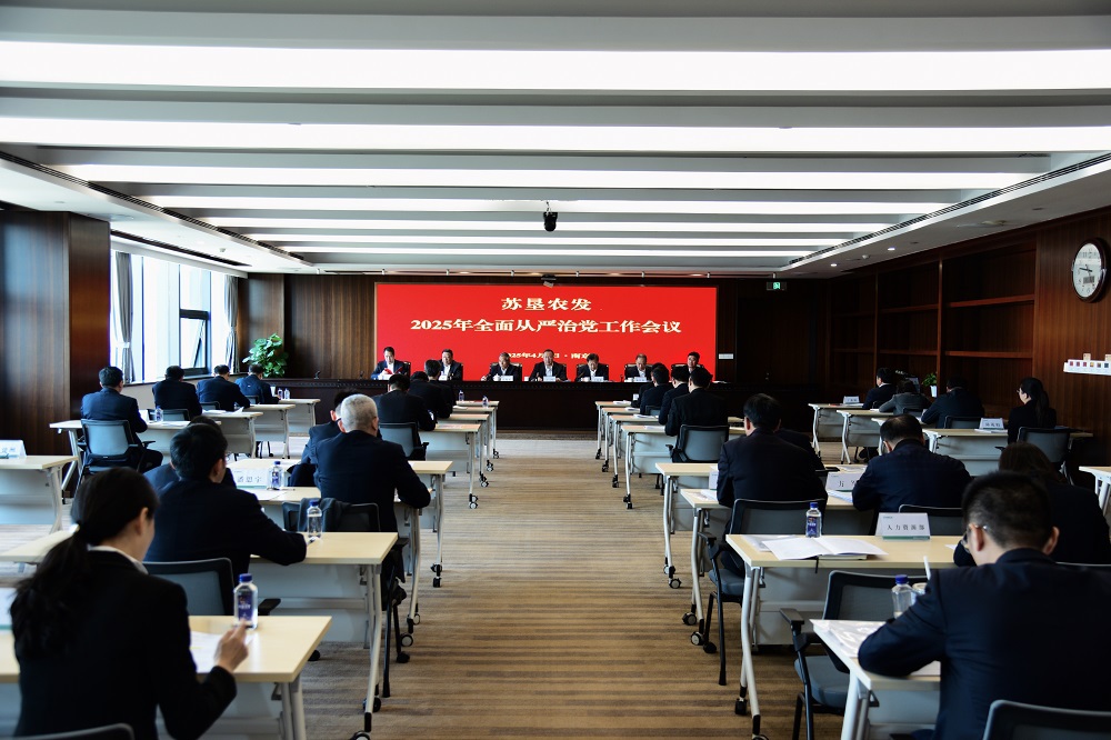 •        4月3日,蘇墾農發召開2025年全面從嚴治黨工作會議,貫徹落實江蘇農墾全面從嚴治黨工作會議暨警示教育大會部署要求,回顧總結2024年全面從嚴治黨工作,研究部署2025年重點任務。