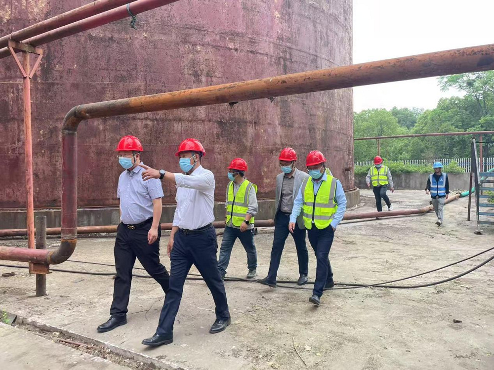 丁濤一行深入油罐區施工現場,細致查看施工細節,安全管理、施工進度及工程質量等情況,認真聽取安全、工程、工藝、生產經營發展思路等工作匯報。