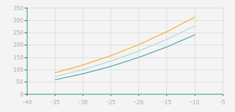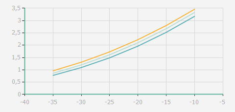 | 蒸發(fā)溫度 | 制冷量+/-5% | 能耗+/-5% | 現(xiàn)在能效+/-5% | 氣體流速+/-5% | 能效+/-7% | ||||